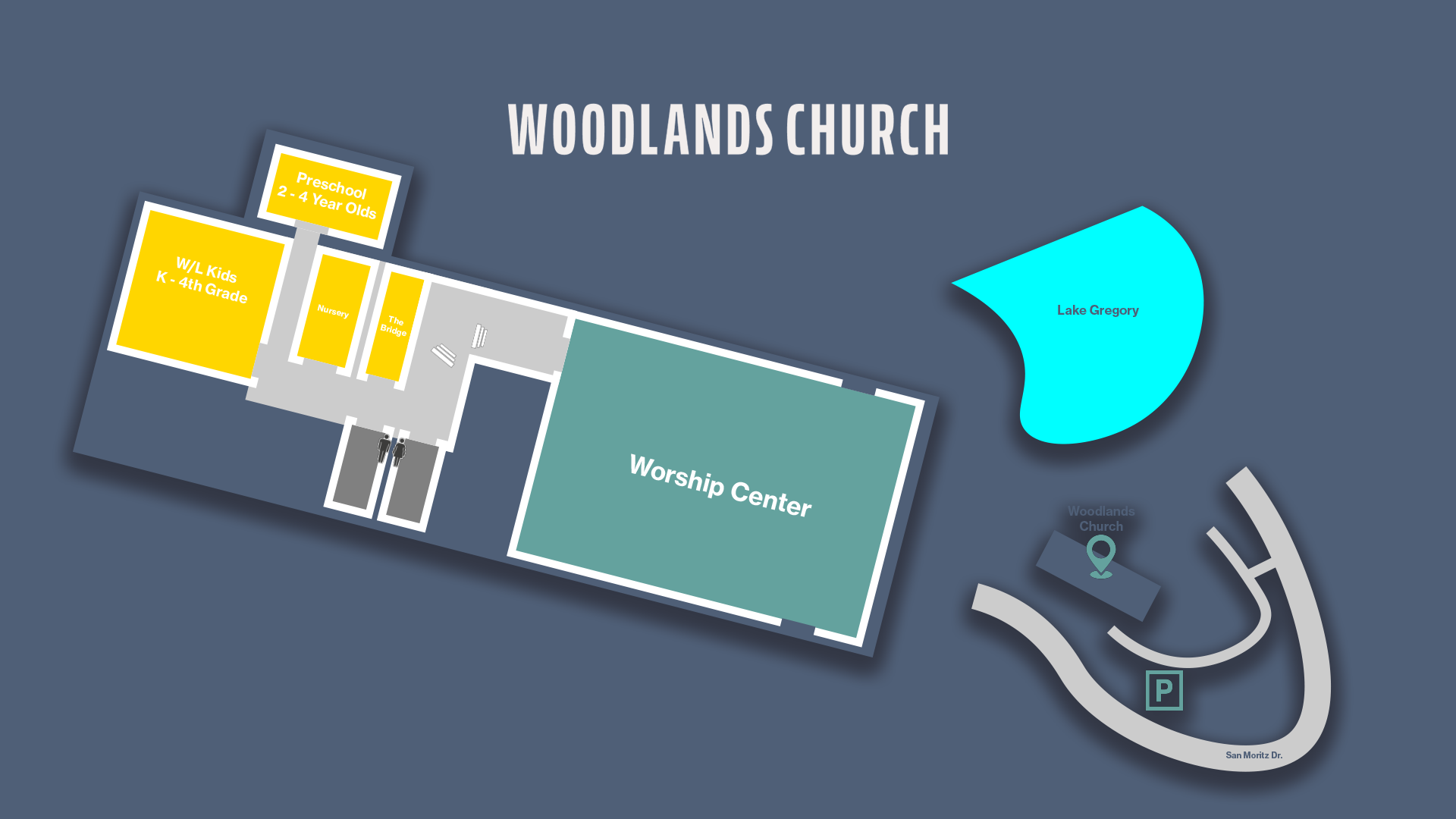 We worship at the beautiful San Moritz Lodge overlooking Lake Gregory.